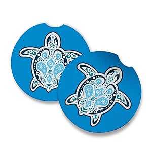 IT'S A SKIN Blue Sea Turtle. Car Coasters for Drinks Set of 2. Perfect Car Accessories with Absorbent Coasters. Car Coaster Measures 2.56 inches with Rubber Backing