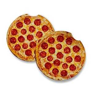 IT'S A SKIN Pepperoni Pizza Pie. Car Coasters for Drinks Set of 2. Perfect Car Accessories with Absorbent Coasters. Car Coaster Measures 2.56 inches with Rubber Backing