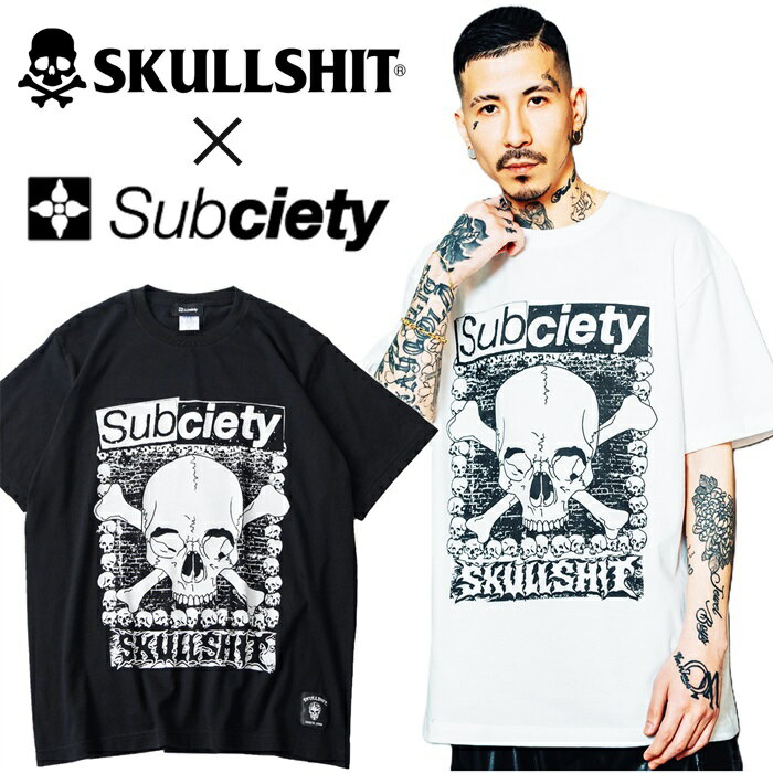 SKULLSHIT × Subciety コラボレーション Tee / スカルシット × サブサエティ 限定半袖Tシャツ オーバーサイズ ビッグT BIG 黒 白 ブラック ホワイト ドクロ メンズレディース ストリート スケーター PUNK ROCK パンク ロック バンド フェス 骸骨祭り ステージ衣装 Rogia