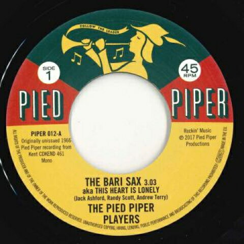 【新品】英7” Pied Piper Players / Cavaliers Bari Sax Aka This Heart Is Lonely / We Go Together PIPER012 Pied Piper /00048