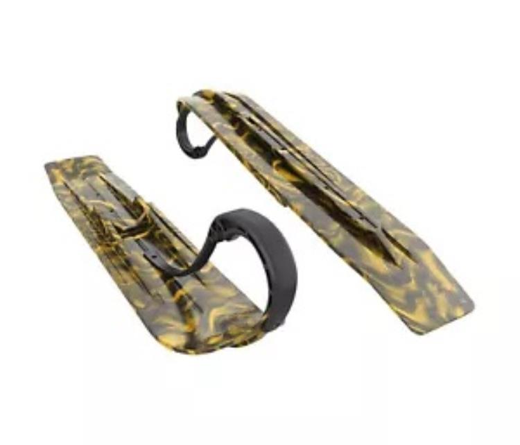 Slydog パウダーハウンド ブラック/イエロー スワール 7 インチ スノーモービル スキー (PH7SWRBLKYLWLOP) Slydog Powder Hound Black/Yellow Swirl 7" Snowmobile Skis (PH7SWRBLKYLWLOP)