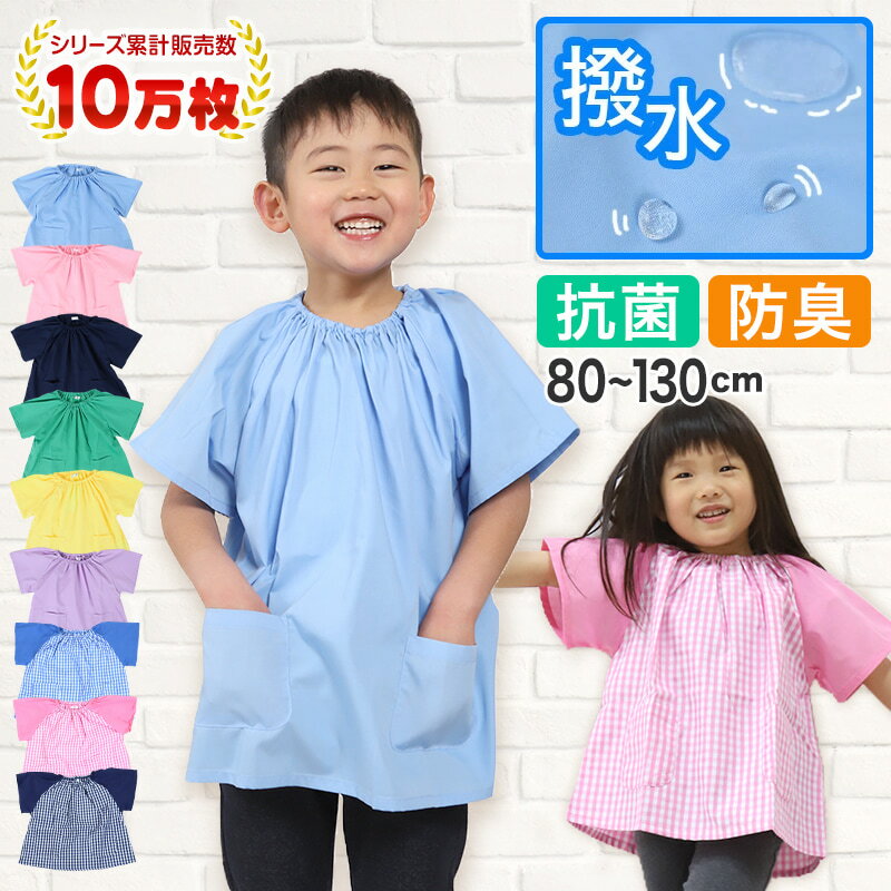 【要エントリー★11/15は抽選でポイントバック!】【楽天1位】幼稚園 スモック 半袖 スモッグ 撥水 女の子 男の子 無地 80〜130cm 子供 保育園 幼児 かぶり 入園 キッズ 80 90 100 110 120 130 シンプル