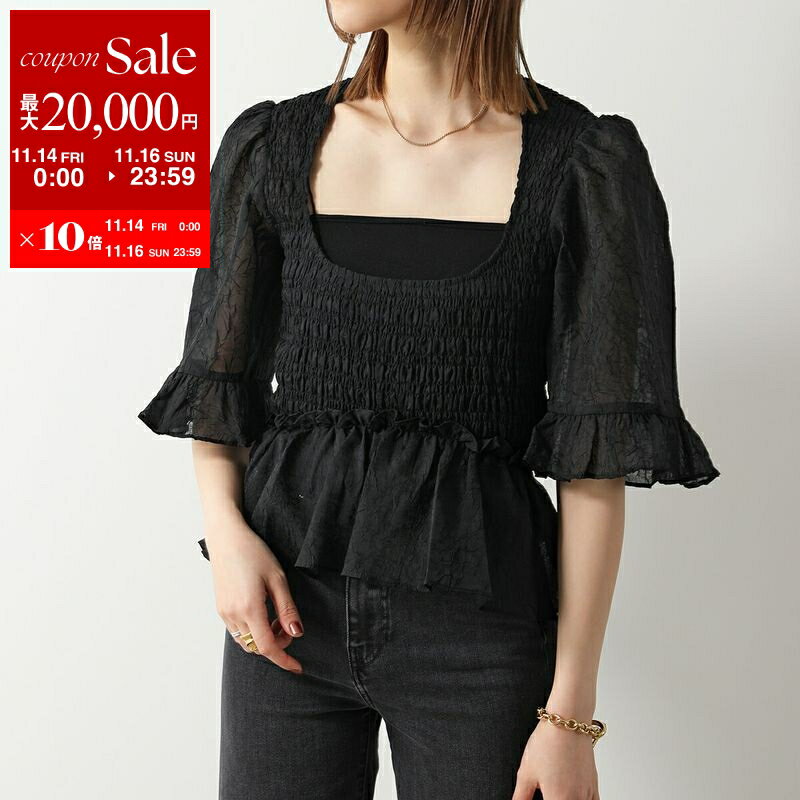 【11/14-11/16限定・最大2万円OFFクーポン配布中】GANNI ガニー ブラウス Crinkled Georgette Smock Blouse F8611 6588 レディース ペプラム Uネック ギャザー 五分袖 099/Black【po_jyuuu】