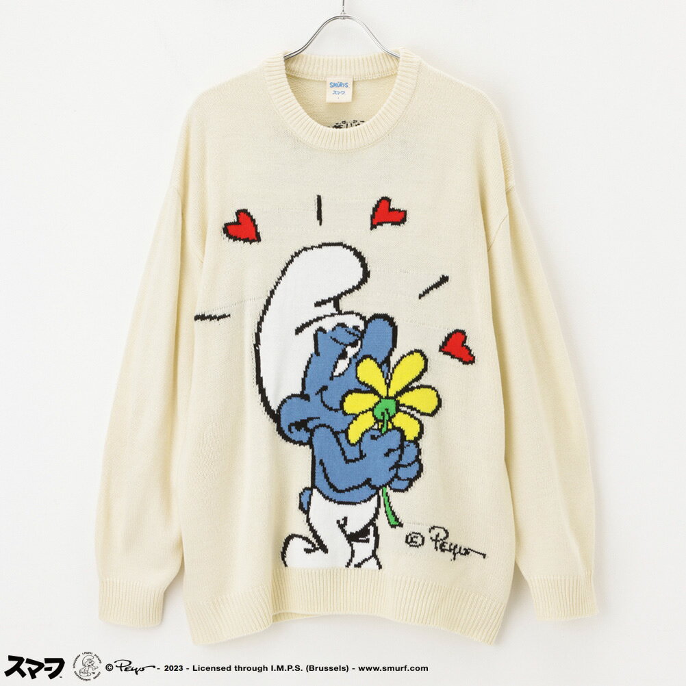 [BF限定★全品最大30%OFFクーポン]スマーフ Smurf ニット セーター メンズ バックデザイン トップス 洗えるニット ハンドウォッシュ クルーネック ユニセックス