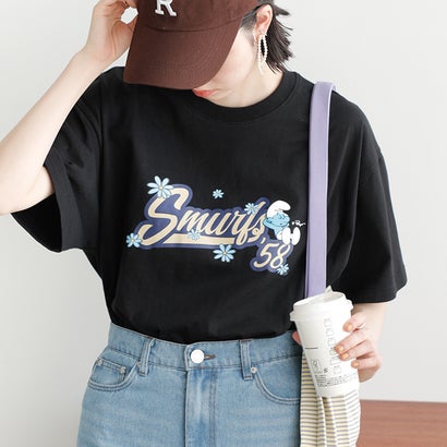 ジーラ GeeRA 【スマーフ】コラボプリントTシャツ (ロゴプリント黒)