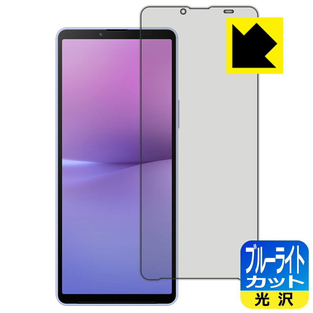 ●対応機種 : Sony Xperia 10 IV (docomo SO-52C / au SOG07 / SoftBank A202SO / UQ mobile SOG07 / 楽天モバイル XQ-CC44)専用の商品です。 (ソニー エクスペリア)●製品内容 : 前面用1枚●※この機器は周辺部が曲面となったラウンド仕様のため、保護フィルムを端まで貼ることができません。(表示部分はカバーしています)●表面硬度9HのPETフィルムでブルーライトも大幅にカットする『9H高硬度【ブルーライトカット】保護フィルム』●安心の国産素材を使用。日本国内の自社工場で製造し出荷しています。【ポスト投函送料無料】商品は【ポスト投函発送 (追跡可能メール便)】で発送します。お急ぎ、配達日時を指定されたい方は以下のクーポンを同時購入ください。【お急ぎ便クーポン】 プラス110円(税込)で速達扱いでの発送。お届けはポストへの投函となります。【配達日時指定クーポン】 プラス550円(税込)で配達日時を指定し、宅配便で発送させていただきます。【お急ぎ便クーポン】はこちらをクリック【配達日時指定クーポン】はこちらをクリック 表面硬度はガラスフィルムと同等の9Hですが、しなやかな柔軟性がある「超ハードコートPETフィルム」なので衝撃を受けても割れません。厚みも一般的なガラスフィルムより薄い約0.2mmでタッチ操作の感度も良好です。(※1) 液晶画面のLEDバックライトから発せられる「ブルーライト」は可視光線の中で最も刺激が強く、目や身体に悪影響があるのではないかといわれています。 このフィルムは、画面に貼りつけるだけで380~495nmの「ブルーライト」を大幅にカットしますので、仕事や遊びで、長時間液晶画面を使用する方や、目の疲れが気になる方にオススメです。 「ブルーライトカット機能付きPCメガネ」などをかけることなく、「ブルーライト」をカットすることができますので、メガネを持ち歩く必要もなく便利です。 ※全光線透過率:92% ※この製品は、ほぼ透明(非常に僅かな色)です。 従来のブルーライトカットフィルムは、映像の色調などが変わる場合もありましたが、このフィルムはほぼ透明(非常に僅かな色)となっており、色調もほとんど変わりません。全光線透過率も92%と、非常に高い光沢タイプです。 表面はフッ素コーティングがされており、皮脂や汚れがつきにくく、また、落ちやすくなっています。指滑りもなめらかで、快適な使用感です。 油性マジックのインクもはじきますので簡単に拭き取れます。 接着面は気泡の入りにくい特殊な自己吸着タイプです。素材に柔軟性があり、貼り付け作業も簡単にできます。また、はがすときにガラス製フィルムのように割れてしまうことはありません。 貼り直しが何度でもできるので、正しい位置へ貼り付けられるまでやり直すことができます。 最高級グレードの国産素材を日本国内の弊社工場で加工している完全な Made in Japan です。安心の品質をお届けします。 ※1「表面硬度 9H」の表示は素材として使用しているフィルムの性能です。機器に貼り付けた状態の測定結果ではありません。 使用上の注意 ●本製品は機器の画面をキズなどから保護するフィルムです。他の目的にはご使用にならないでください。 ●本製品は液晶保護および機器本体を完全に保護することを保証するものではありません。機器の破損、損傷、故障、その他損害につきましては一切の責任を負いかねます。 ●製品の性質上、画面操作の反応が変化したり、表示等が変化して見える場合がございます。 ●貼り付け作業時の失敗(位置ズレ、汚れ、ゆがみ、折れ、気泡など)および取り外し作業時の破損、損傷などについては、一切の責任を負いかねます。 ●水に濡れた状態でのご使用は吸着力の低下などにより、保護フィルムがはがれてしまう場合がございます。防水対応の機器でご使用の場合はご注意ください。 ●アルコール類やその他薬剤を本製品に付着させないでください。表面のコーティングや吸着面が変質するおそれがあります。 ●品質向上のため、仕様などを予告なく変更する場合がございますので、予めご了承ください。