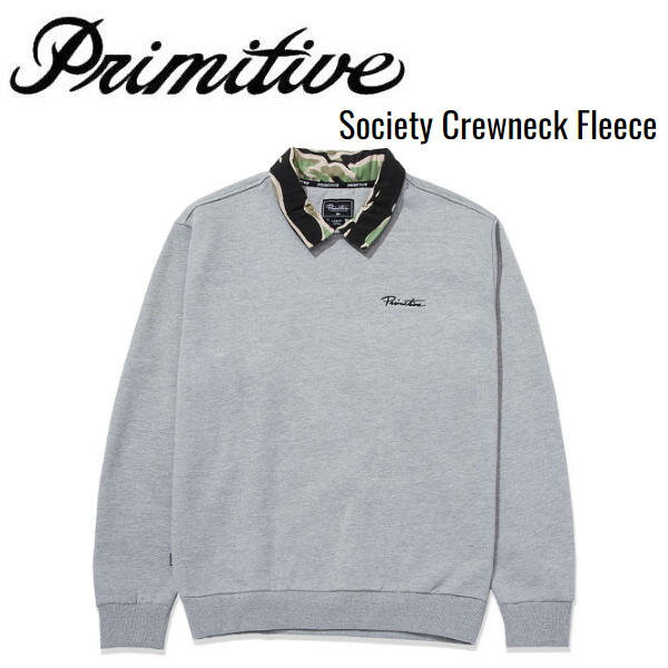 【Primitive】プリミティブ 2022秋冬 Society Crewneck Fleece クルーネック トレーナー スウェット スケートボード スケボー メンズ SKATEBOARD アウター M/L/XL グレー【正規品】