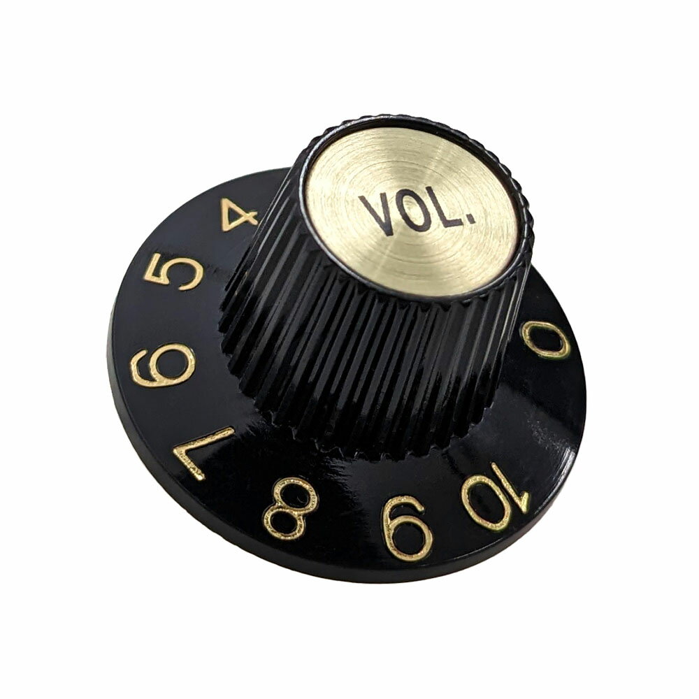 ギブソンのレスポールカスタム等に使用されていることで有名なゴールドプレート/ゴールド文字の別名ウィッチハットノブとも呼ばれるノブです。ゴールドトッププレートに黒文字、数字部分は金文字、CTSなどの24山刻みインチ規格スプリットシャフト用となります。日本製□配送方法に関する注意事項こちらの商品はメール便にてお届けします。また、送料別商品でも税込3,980円以上のご注文で送料無料でお届け致します。(※税込3,980円未満のご注文時の送料についてはこちらをご覧ください。)