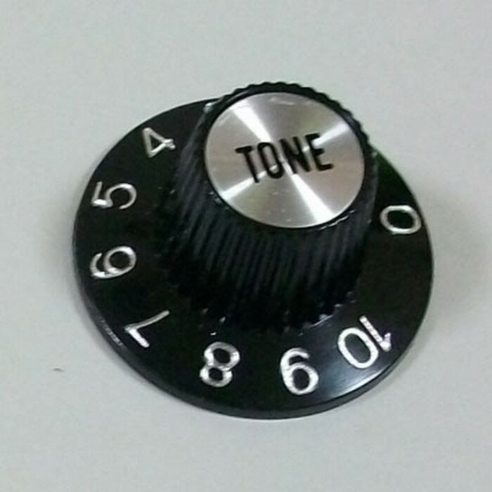 ソンブレロタイプ トーン ブラック/シルバー インチ USA(インチサイズ)のPOTに取り付け可能なノブです。 ジャズマスターにお勧めです。「TONE」が表記されています。 1パッケージ1個入り ※画像はサンプルです。モニターの発色の具合等により、実際の物と色味が異なる場合がございます。 予めご了承下さいませ。 その他のノブは こちら→ その他のエレキギターパーツは こちら→
