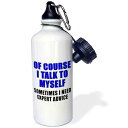 3dRose "Of Course I Talk To Myself Sometimes I Need Expert Advice Blue" Sports Water Bottle, 21 oz, White