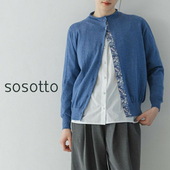 【16%オフ・クーポン対象】sosotto ソソット カーディガン ニット リバティ 使い ボトルネック コットン 綿 カシミア