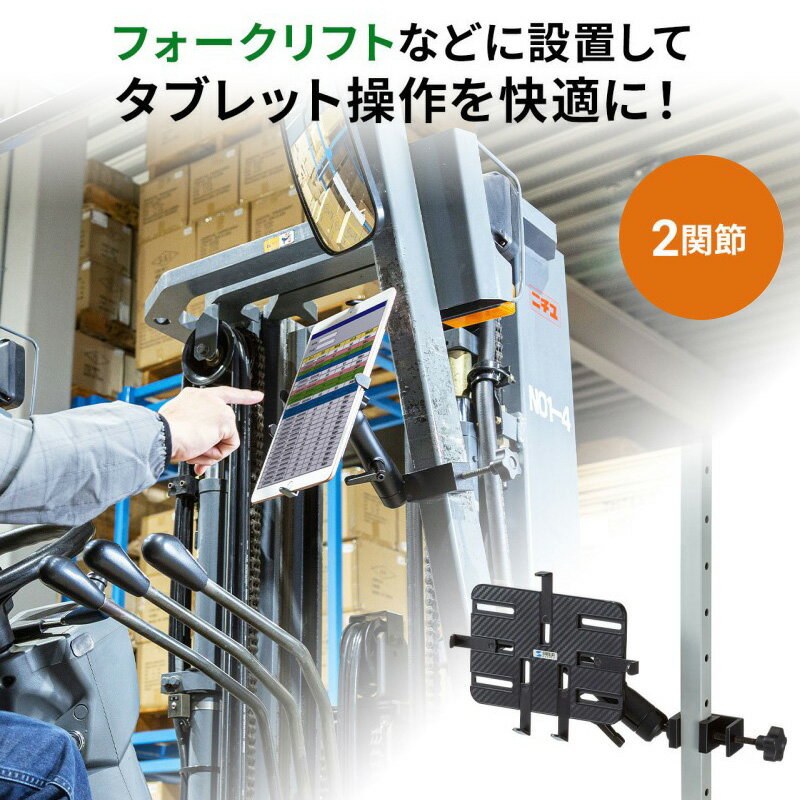 【代引不可】支柱取り付け用 タブレットホルダー 2関節 7~11インチ対応 フォークリフト 現場作業 便利 サンワサプライ CAR-SPHLD3