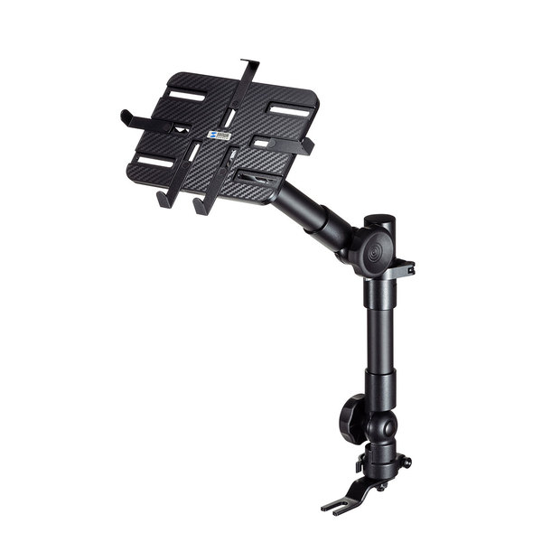 フォークリフトなどの支柱にタブレットを設置できる、タブレットホルダー。3関節。●7〜11インチのタブレットPCを固定できるタブレットホルダーです。●フォークリフトなどの支柱に取り付けることができます。●3つの関節を調整して自由な位置に止めることができます。●ホルダーは上下左右をしっかりとホールドする仕様で、2つのL字クリップと3つのV字クリップで、タブレットを固定します。●ホルダー部は回転させることができるので、設置したまま縦・横の変更ができます。【ご注意】※支柱に取り付けた際は、滑り落ちたり、クランプがずれたりしないことを確認したうえでご使用ください。