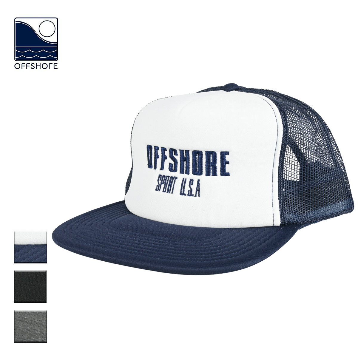 【送料無料】 OFFSHORE オフショア SPORTS USA CAP メンズ/レディース ホワイト×ネイビー/ブラック/グレー OS OS25-2SD-008 【キャップ 帽子 メッシュキャップ 刺?ロゴ ロゴ スナップ 80年代 80s おしゃれ ブランド サーフ サーフブランド 紺 黒】