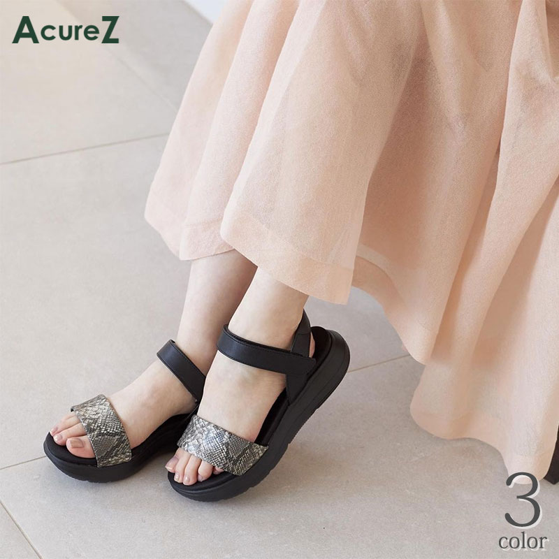 サンダル レディース スポーツ 厚底 痛くない AcureZ アキュアーズ アシックス asics 疲れない 靴 女性 歩きやすい [ 婦人 靴 履きやすい 女性 痛くならない つっかけ インソール 柔らかい スポサン 軽い 黒 蛇柄 スネーク 長時間 疲れない 可愛い おしゃれ 夏 海 川 ]