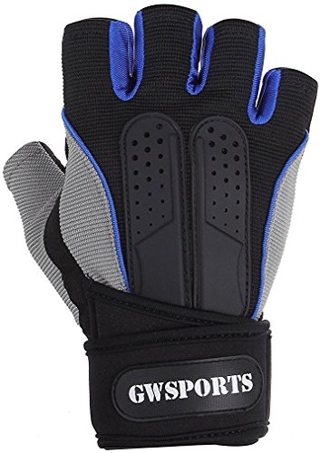色:ブルー サイズ:S GW SPORTS ウェイトリフティング トレーニング ジム グローブ リストラップ付 グリップ仕様