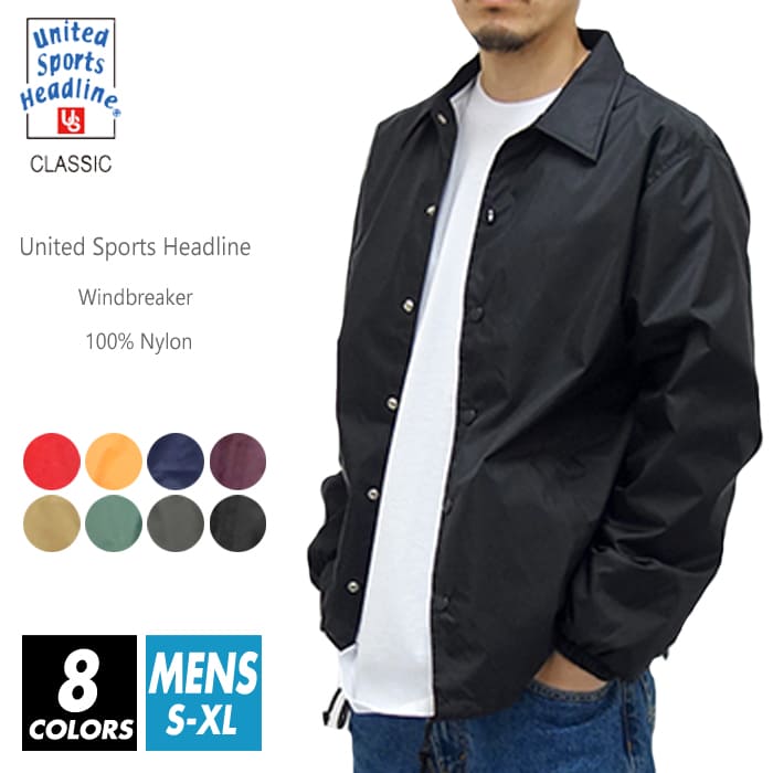 UNITED SPORTS HEADLINE ユナイテッドスポーツ コーチ ジャケット ウィンドブレーカー 無地 アウター ブルゾン メンズ アメカジ バレンタインプレゼント