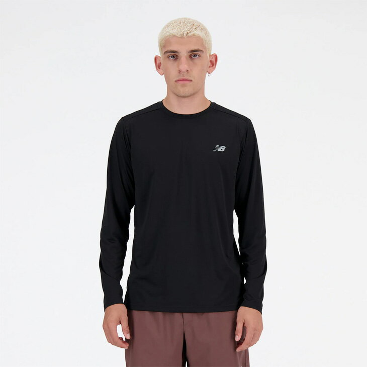 ニューバランス 長袖 Tシャツ メンズ Newbalance Sport Essentials ランニングウェア マラソン ジョギング 陸上 トレーニング スポーツウェア 吸汗速乾 ドライ 軽量 服 無地 長そで ロンT ワンポイント メンズウエア 服 黒 ブランド アパレル/MT41225-BK