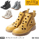 【割引クーポン対象商品】定番 送料無料 Milla Sports ミラスポーツ 日本製 本革 靴 ダブルファスナーブーツ 08-1032 4E ASWソール 撥水加工 超軽量 ふかふかソール 防菌 防臭