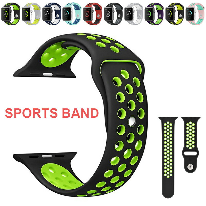 アップルウォッチ バンド シリコン applewatch ベルト スポーツ 穴あき メンズ レディース おしゃれ アップルウォッチバンド カラフル Apple Watch series 9 8 7 SE 6 5 4 3 2 45mm 38mm かわいい Sports 防水 撥水