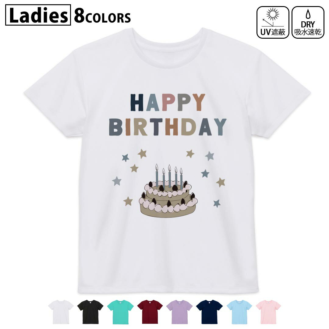 ドライTシャツ 吸水 速乾 DRY 選べる8カラー tシャツ レディース スポーツ ゆったり UV対策 デザイン M L Tシャツ ティーシャツ T shirt017797 Birthday ケーキ かわいい