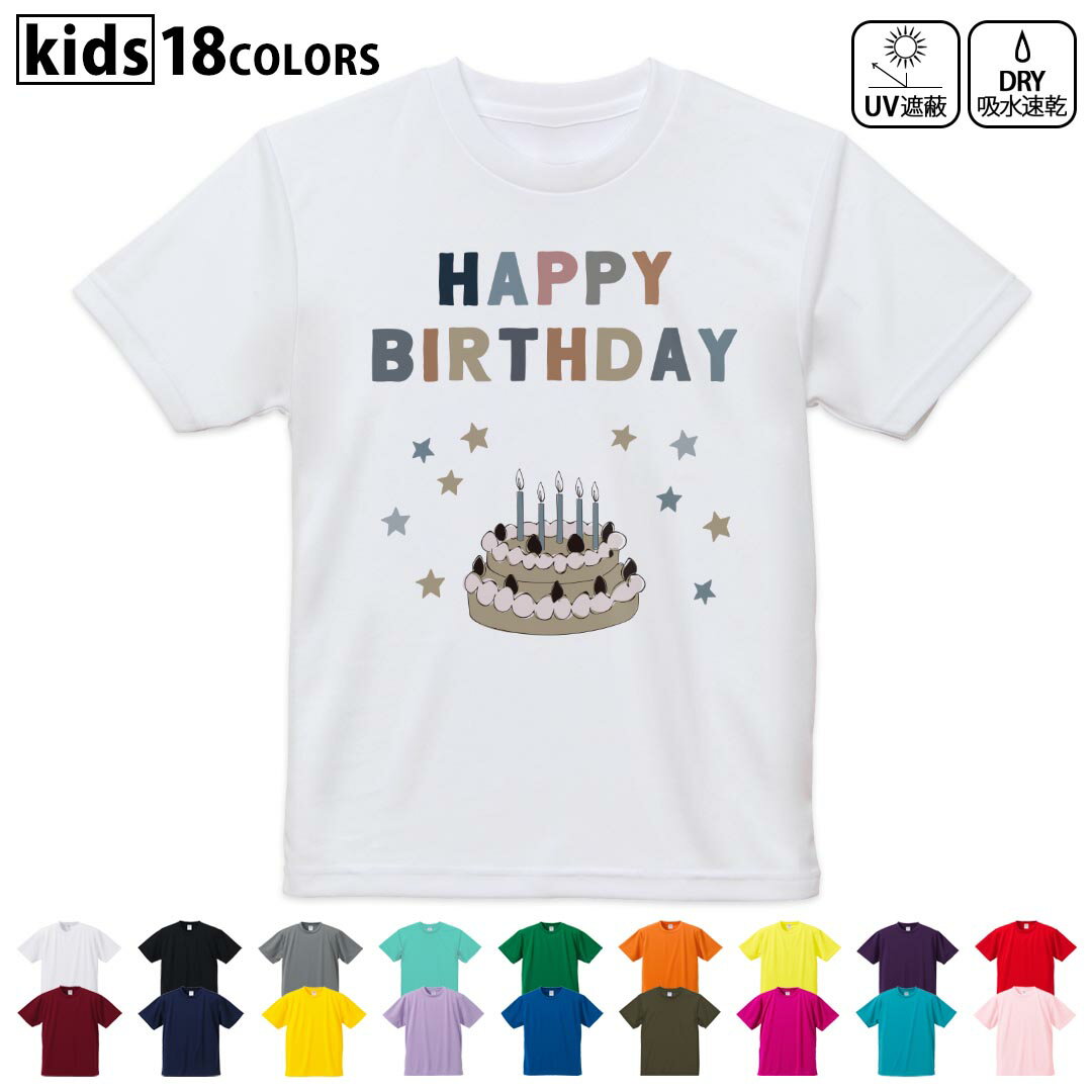 ドライTシャツ 吸水 速乾 DRY 選べる18カラー 4サイズ キッズ 半袖 デザインドライTシャツ スポーツ ゆったり デザイン 120サイズ 130サイズ 140サイズ 150サイズ 160サイズ 017793 Birthday ケーキ おしゃれ