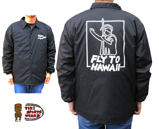 ハワイアン コーチジャケット TIKI SPORTS WEAR ティキスポーツウエア ナイロン FIY TO HAWAII 裏地付き アメカジ 黒 ブラック