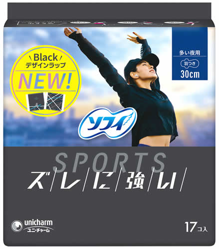 ユニチャーム ソフィSPORTS 300羽つき 多い夜用 30cm (17枚) 生理用ナプキン ソフィスポーツ 備蓄 【医薬部外品】