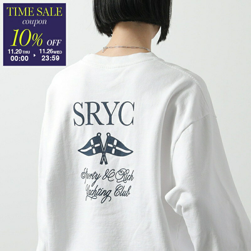 【ブラックフライデー・11/26-23:59迄10%OFFクーポン】SPORTY&RICH スポーティアンドリッチ トレーナー CR884 レディース スウェット 長袖 クルーネック 裏起毛 コットン ロゴ オーバーサイズ ホワイト【cp_ten】