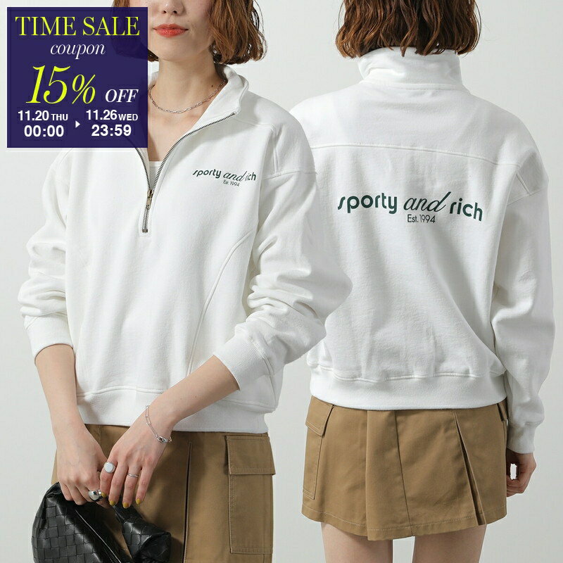 【ブラックフライデー・11/26-23:59迄15%OFFクーポン】SPORTY&RICH スポーティアンドリッチ トレーナー QZAW239 レディース スウェット ハーフジップ ハイネック 長袖 裏起毛 ロゴ WHITE【cp_fifte】