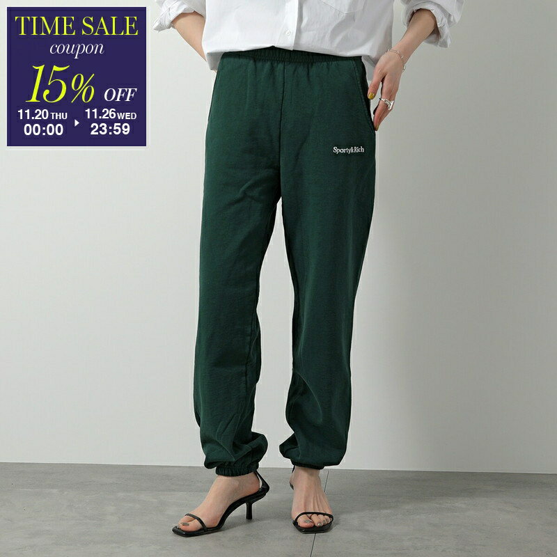 【ブラックフライデー・11/26-23:59迄15%OFFクーポン】SPORTY&RICH スポーティアンドリッチ スウェットパンツ SWAW2328 レディース コットン 裏起毛 ジョガーパンツ ロゴ Forest【cp_fifte】