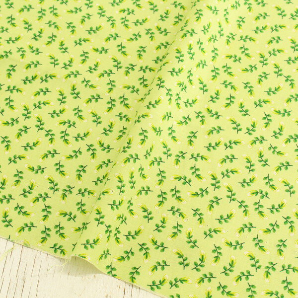 輸入生地 生地 グリーン地 葉っぱ 白いつぼみ Free Sprit フリースピリット USAプリント (最低単位30cm〜10cm単位の切売)