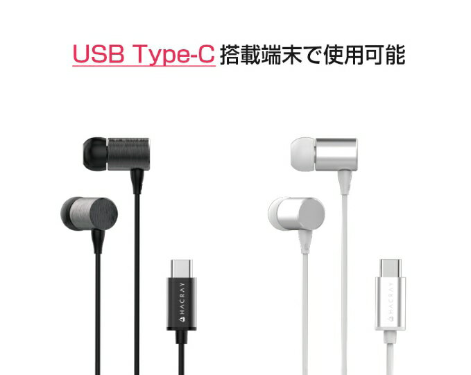 <HACRAY(ハクライ)> Stereo Earphone USB Type-C コネクタ専用 ハイレゾ音源対応 ハンズフリー可能 高音質イヤホン HR13085 HR13086