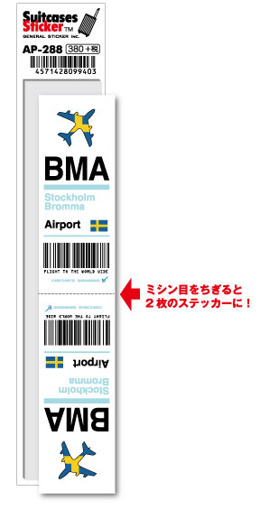 AP288 BMA Stockholm Bromma ストックホルム ブロンマ空港 Europe 空港コードステッカー 旅行 空港 エアポート スリーレター 3LTR グッズ