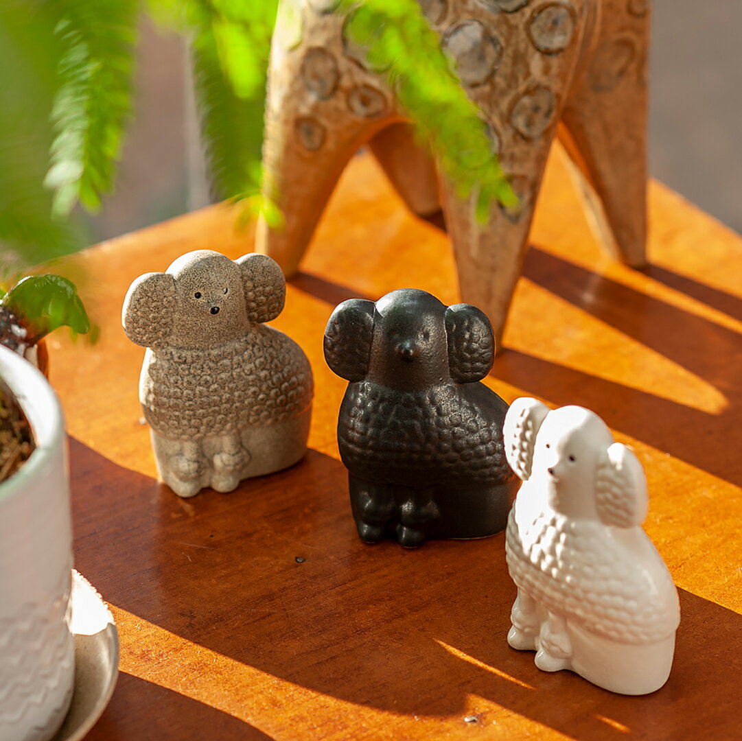 小さな瞳と鼻のバランスが愛くるしい「プードル S」。色違いで揃えて並べるのもおすすめです。写真は左から「ブラック」、「グレー」、「ホワイト」。 前足をちょこんと揃えてお行儀よく座るポーズに心奪われて、いつでも目に入る場所に置いておきたくなります。写真は左から「グレー」、「ブラック」、「ホワイト」。 スウェーデンにある工房「ケラミックステュディオン/Keramik Studion Gustavsberg」でつくられる「プードル」。職人による手作業でひとつひとつつくられているので、焼き色や表情が少しずつ違っています。 手のひらに乗る大きさです。平べったい形なので置く場所を選びません。写真は「グレー」。 プードルならではのくるくるの巻き毛が表現されています。写真は「グレー」。 つぶらな瞳であなたを見つめます。写真は「グレー」。 お行儀よく揃えられた前足。足首の巻き毛もしっかり表現されています。写真は「ホワイト」。 顔は右向き左向きがございます。*向きはお選びいただけませんのでご了承ください。 つぶらな瞳であなたをお出迎え プードル S(リサ・ラーソン) とにかくかわいいのです、この「プードル S」。 リサ・ラーソンがつくるネコ作品に次いで人気の高い「ケンネル/KENNELシリーズ」にラインナップされています。ケンネルとはスウェーデン語で「犬小屋」という意味です。 ポン、ポン、ポンと筆をのせただけに見える両目と鼻がそのかわいらしさを際立たせており、耳、体、足首の連続した丸い凹凸だけで、プードルならではのふわふわとした毛が表現されているのはさすがのひとこと。お行儀よく前脚を揃えてこちらをじっと見ている姿にキュンとします。言わずもがな、プードル好きにはイチオシです。 石のように見える色合いの「グレー」、シンプルでさわやかな印象の「ホワイト」、かわいいけれどちょっぴりクールな「ブラック」の3つのカラーがラインナップ。北欧スタイルのお部屋はもちろん、和室に飾っても馴染むでしょう。平べったい形をしているので家の中のちょっとしたスペースに飾ることができます。 スウェーデンのグスタフスベリにある工房「ケラミックステュディオン/Keramik Studion Gustavsberg」にて職人がひとつひとつ手作業で仕上げているこのプードルミニ。届いたその日から唯一無二の存在になり、かわいがらずにはいられなくなりますよ。 商品詳細 4方向から見た「プードル S(グレー)」。 真上から見たところ。写真は左から「ブラック」、「グレー」、「ホワイト」。 真下から見たところ。「LISA L」のサインが入っています。サインの内容、書体、向きには個体差があります。写真は左から「ブラック」、「グレー」、「ホワイト」。 ブランド リサ・ラーソン/Lisa Larson(スウェーデン) 制作 ケラミックステュディオン/Keramik Studion Gustavsberg サイズ 約W6.8×H9.3×D3.5cm 素材 陶器 製造国 スウェーデン 備考 職人による手づくりのため表情や焼き色、着色はひとつひとつ異なります。 ブランド紹介 リサ・ラーソン 1931年生まれのスウェーデンの陶芸家。1954年にグスタフスベリ社に入社し、素朴で温かみのある動物や人をモチーフにした作品を多く生み出しました。1979年同社を退社。1992年に「ケラミックステュディオン/Keramikstudion」社を設立。経験豊かで確かな技術を持つ職人の力を借りながら、自身の代表作品である「ライオン」、「ブルドッグ」などの作品の復刻をはじめます。一方で新作や新シリーズを発表するなど、今でも精力的に活動を続けています。彼女の作品は本国スウェーデンはもちろん、世界中の数多くの人々に愛されています。 このブランドの商品一覧はこちら ご購入前に知っておいていただきたいこと 素材の特性上、製造工程で生じる以下のような点がございますが、メーカーの品質基準をクリアした商品になります。また、当店にて再度検品を行った製品をお客様にお届けしております。 釉薬のかかり具合による色味の違いが見られる場合があります。 黒点が見られる場合があります。 製造上のひびが見られる場合がございます。 関連商品 ねずみ(リサ・ラーソン) アザラシ(リサ・ラーソン) シロクマ(リサ・ラーソン) ハト(リサ・ラーソン) バセット(リサ・ラーソン) ブルテリア(リサ・ラーソン) モア(リサ・ラーソン) マンズ(リサ・ラーソン) ミア(リサ・ラーソン) ディエチ キャット(リサ・ラーソン)