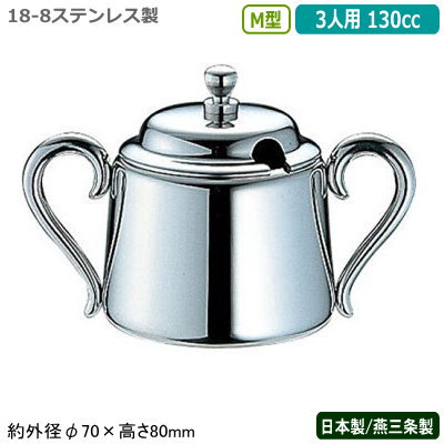 シュガーポット ステンレス 日本製 燕三条製YUKIWA 18-8ステンレス製M型 シュガーポット 3人用 130cc業務用 家庭用 容器 食器 砂糖入れ シンプル デザイン レトロ 卓上 テーブル コーヒー店 珈琲店 喫茶店 レストラン 飲食店 カフェ ユキワ UK sug