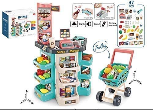 【中古】【未使用・未開封品】MEDca Kids Play Supermarket Set with Scanner - Pretend Play Grocery Shop Set - 47 Piece Complete Playset with Cash Register Credit Card