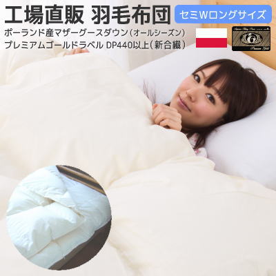 【ポイント5倍】 ポーランド産 コウダ種 マザーグース 95% 一年中使える 二枚合わせ 羽毛布団SWL170×210cm 羽毛布団 工場直販 国産プレミアムゴールド セミダブル [▼送無] SP 羽毛 羽毛布団 セミダブル用 羽毛ぶとん 通販 楽天[超]