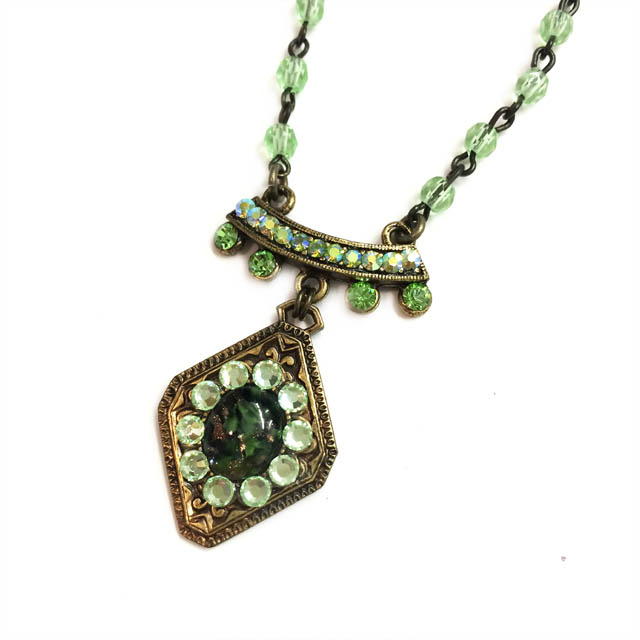 【ポイント3倍27(木)2時終了】 ネックレス アンティーク テイスト スワロ 使用 【7割引クーポン付 送料無料 /売り尽くし70%OFF】 キラキラ かわいい スワロフスキー BELLADONNA ベラドンナ ハンドメイド アクセサリー クリスマス プレゼント 緑 レトロ 真鍮