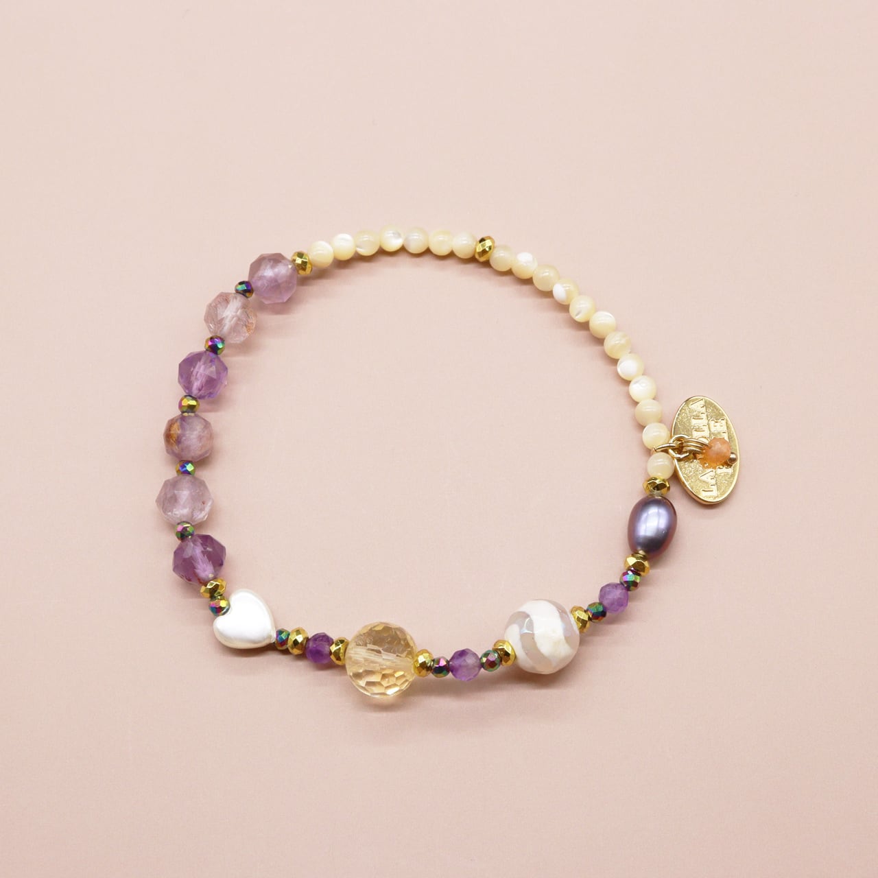 【Mermaid Teardrops】水紋天珠 パール シトリン ガーデンアメシスト ブレスレット | 【クーポン配布中】 誕生石 おしゃれ 天然石 パワーストーン アクセサリー 記念日 レディース 女性