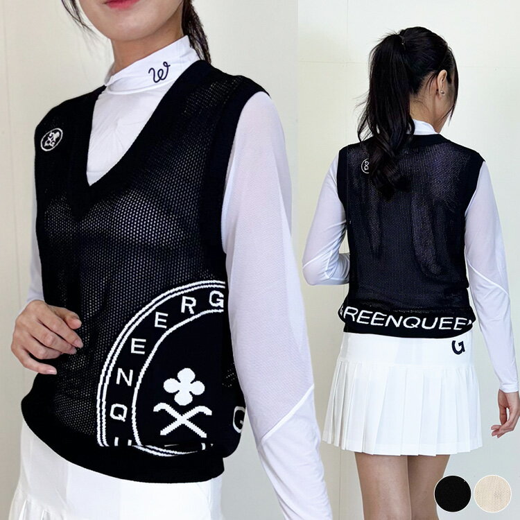 ゴルフウェア ベスト レディース 韓国 Vネック 夏 春 秋 メッシュ 涼しい 白 黒 春夏 トップス シースルー シアートップス アシンメトリー ストレッチ おしゃれ ゴルフ女子 大人 ゴルフ スポーツ テニス