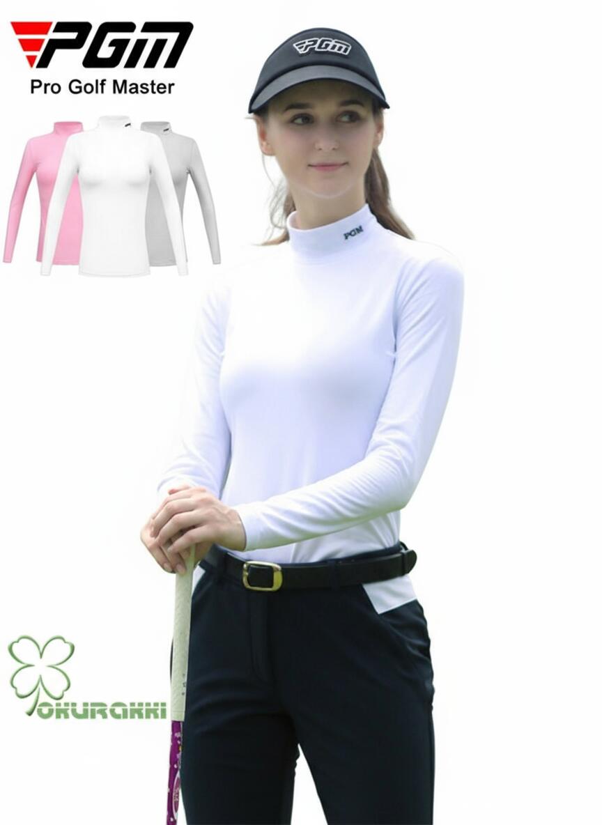 【送料無料】 ゴルフシャツ UVカット ひんやり マスク一体 ネックカバー付き 耳かけ 長袖 日焼け防止 接触冷感 夏 ハイネック ゴルフインナ インナーシャツ レディース Tシャツ 通気 吸汗 速乾 薄手 ヨガ アウトドア テニス 運動 紫外線対策 c-yundong-12953-gg