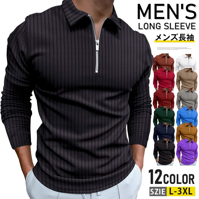 ポロシャツ 長袖 メンズ ポロ シャツ ゴルフシャツ ハーフジップ しま柄 長袖 春 秋 ファスナー テニス 紳士服 スポーツ 紳士 ビジネス ゴルフウェア 細身 新生活 父 30代 40代 50代 60代