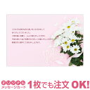 オリジナルのあいさつ文は、商品注文後「注文番号」を記入のうえ、下の専用ホームよりお送りください。 【オリジナルメッセージカードに入れるあいさつ例文】---------------例文1(お礼)--------------- このたびは過分なお心遣いをいただきまして ありがとうございました。 ご厚志誠に有難く、心より御礼申し上げます。 今後も変わらぬご指導のほど 宜しくお願い申し上げます。 略儀ながら書中にてお礼申し上げます。---------------例文2(父の日)---------------お父さんへいつも家族のために遅くまで頑張ってくれてありがとうこれからもずっと元気なお父さんでいてください---------------例文3(母の日)---------------お母さんへ いつもありがとう! これからも素敵なおかあさんでいてください 感謝の気持ちを込めて… 商品詳細 内容 各種オリジナルメッセージカード 1枚づつ透明袋に入れて発送(はがき仕様は透明袋なし) 1枚~注文可 サイズ 100×148mm 素材 ・写真光沢紙 ・マット紙(光沢なし) 上記2種類よりお選びいただけます。 あいさつ文 お客様のオリジナル文で作成 ご注意 サイトに表示されている画像は、モニターの発色の具合によって、色など印刷仕上りとは異なることがありますので、予めご了承ください。