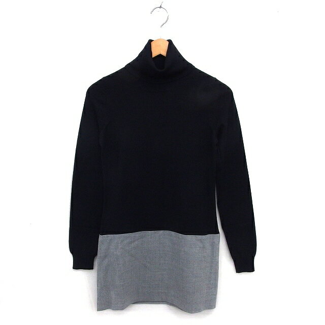 【中古】セオリー Theory チュニック タートルネック ニット ウール リブ 切替 長袖 2 黒 ブラック /NT5 レディース 【ベクトル 古着】 250512