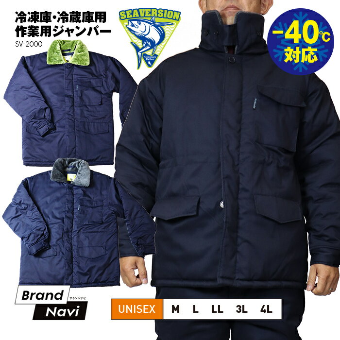 シーバージョン -40℃対応 プロ仕様 冷凍庫・冷蔵庫用防寒作業着ジャンパー SV-2000 プロユーズの視点で作られた、業務用防寒ジャンパーは、 冷凍・冷蔵庫作業の必需品。マイナス40度対応! 中綿に熱効率の良い中空繊維・サーモライトを使用し、脅威の保温性を発揮します。 首周りに保温性と肌触りの良いフワフワのボア素材を使用。 襟を立てれは、顔半分ほど隠れる。 冷気をシャットアウト!冷やしたくない首周りに徹底した防寒機能を搭載。 ファスナーの上に設けられたボタン式のフラップが冷気をブロックし、 外気が内部に入り込むのを防ぎます。 手袋をしていても開け閉めしやすい大きなサイズのジッパーを採用。 前面に3つの雨蓋付きポケットを搭載。 胸ポケットは手袋をしていても開け閉めしやすい構造。 作業中に擦れやすい肘部分は二重の生地でしっかりと補強。 ダイヤキルト加工で厚手の中綿がヨレるのを防止。 ウエストのドローコードで締め付け調整が可能。 袖部分はアーチ構造の二重袖で内部の袖にはリブを採用。 水滴・冷気などの侵入をしっかりとガード。 【製品仕様についてのお知らせ】 ※生産時期によって裏地の色などの仕様が異なる商品がございます。製品の品質に変更はございません。 当社都合ですみませんが、混在して販売させていただいています。 仕様につきまして、お客様にお選びいただくことができません。 ご了承いただきご購入をお願い申し上げます。 【素材】 表地:綿35% ポリエステル65% 中綿:ポリエステル100% 【カラー】 ネイビー×グリーンボア ネイビー×グレーボア 【サイズ】 大きなサイズに対応! M L LL 3L 4L 【ブランド】 SEA VERSION/シーバージョン 水産事業者向けレインウェア・アパレルブランド。 【用途】 漁業・水産業全般 倉庫 冷蔵施設 冷凍業 食品製造 建設業(土木工事)等 ※在庫あります。まとめ買いをご希望の際はお問い合わせください。 ※こちらの商品は衣服の上から着用するため、若干大きめの作りになっております。 ※撮影は室内の照明下でストロボを使って行っております。 撮影時の光の加減・お使いのモニターによって色味に若干異なる場合がございますので予めご了承ください。 【検索ワード】防寒 極寒 作業用 業務用 水産業 建設業 運輸 輸送業 冷凍庫 冷蔵庫 物流センター 零下 特殊 マイナス 40度 THERMOLITE ジャンパー ジャンバー 上着 コート ジャケット 冷凍冷蔵庫用防寒服 漁業船舶用品 遠洋マグロ漁船 急速冷凍庫用防寒服 防寒用品 超低温冷蔵倉庫 庫内作業用 寒冷地 超低温用 アディダス 人気モデルで選ぶアディダススタンスミスアディダススーパースターアディダスリュックサックアディダスバケットハットニューバランス 人気モデルで選ぶニューバランスCM996ニューバランスWL574ニューバランスBB550ニューバランスML373ノースフェイス 人気アイテムで選ぶノースフェイストートバッグノースフェイスショルダーバッグノースフェイスウインドジャケットノースフェイスウインドパンツ/防寒 極寒 作業用 業務用 水産業 建設業 運輸 輸送業 冷凍庫 冷蔵庫 物流センター 零下 特殊 マイナス 40度 THERMOLITE ジャンパー ジャンバー 上着 コート ジャケット 冷凍冷蔵庫用防寒服 漁業船舶用品 遠洋マグロ漁船 急速冷凍庫用防寒服 防寒用品 超低温冷蔵倉庫 庫内作業用 寒冷地 超低温用/