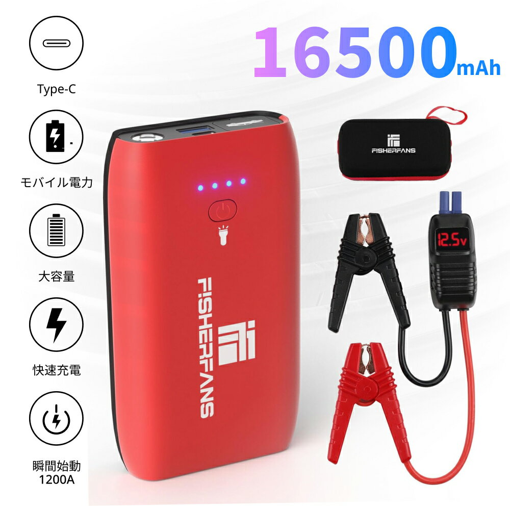 【週末限定タイムセール】★7380円→6580円【送料無料】★【人気商品】車 バイク ジャンプスターター 大容量16500mAh 小型軽量 12V ピーク電流1200A QDSPブースター技術 最大7.2Lガソリン車・5.5ディーゼル車対応 Type-C搭載 LED応急ライト搭載 防災グッズ 24ヶ月保証付
