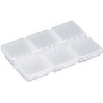 ■小物をすっきり収納するのに便利なケースです。【仕様】・色: クリア・外形寸法(mm)間口: 85・外形寸法(mm)奥行: 62・外形寸法(mm)高さ: 14・有効内寸(mm)間口: 22・有効内寸(mm)奥行: 23・有効内寸(mm)高さ: 10・タイプ: 固定仕切・コマ数: 6・1コマ有効内寸(mm): 22×23×10・固定仕切タイプ・仕切あり・樹脂製【材質/仕上】・本体: ポリプロピレン(PP)