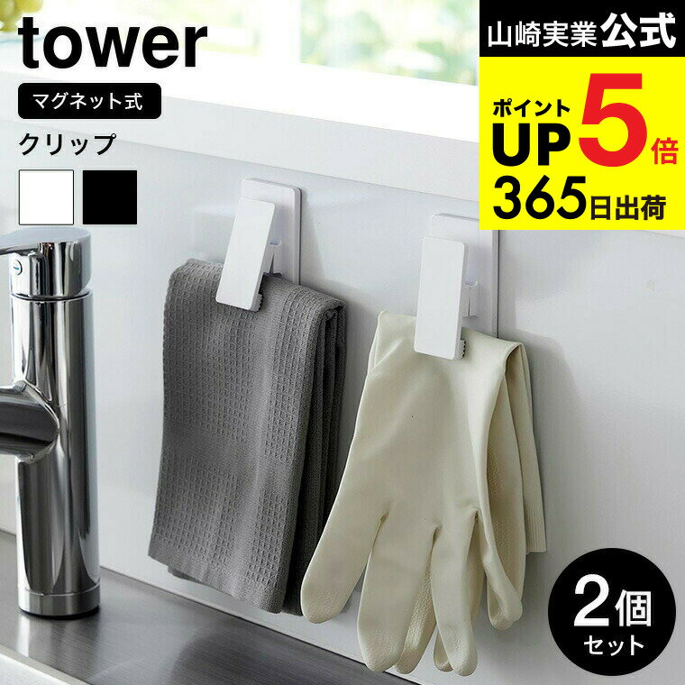 [ マグネットクリップ タワー2個組 ] 山崎実業 公式 tower ホワイト ブラック 3669 3670 / ふきん 布巾 手袋 エプロン ミトン ランドリーバッグ バスマット マグネット 収納 挟む 引っ掛け 浮かせる収納 yamazaki タワーシリーズ JGS 最強配送 dej cpj 送料無料