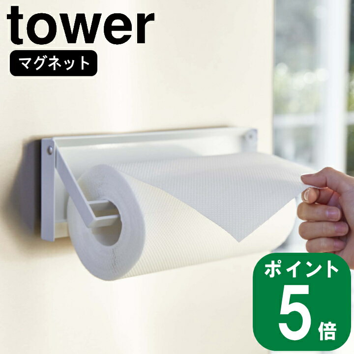 【365日出荷】( 片手でカット マグネット キッチン ペーパー ホルダー タワー ) tower 山崎実業 公式 オンライン 通販 磁石 冷蔵庫 収納 大判 キッチン 料理 揚げ物 水切り シンプル おしゃれ 北欧 ホワイト ブラック 白 黒 4941 4942 お得